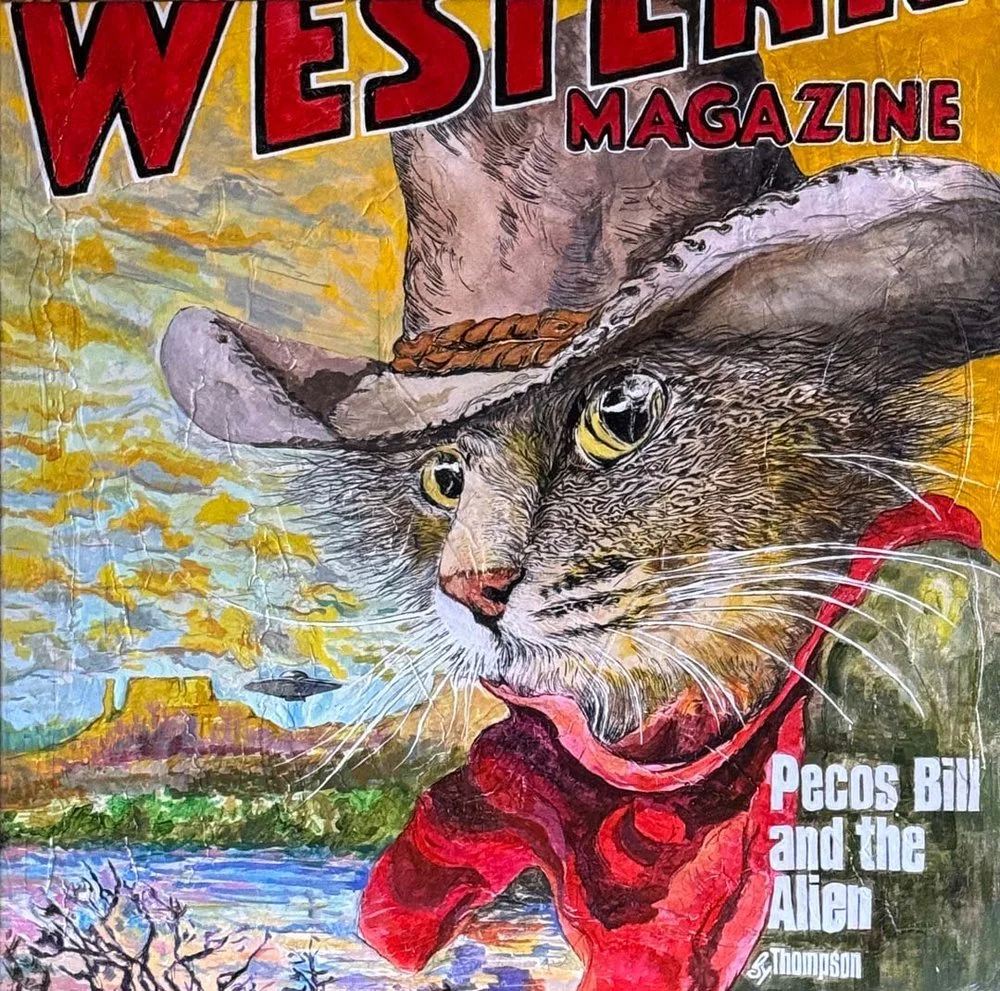 This is his story…Pecos Bill is said to be fictional cowboy and folk hero in stories set during American westward expansion. Rumored to have been raised by coyotes after his parents lost him near the Pecos River. Latter, he rode a mountain lion, used a rattlesnake as a lasso, bested the toughest of hombres.Pecos Bill was an exaggerated personification of Western stamina and values. HOWEVER…little is known about his dual with the Alien as was chronicled by Western Magazine.